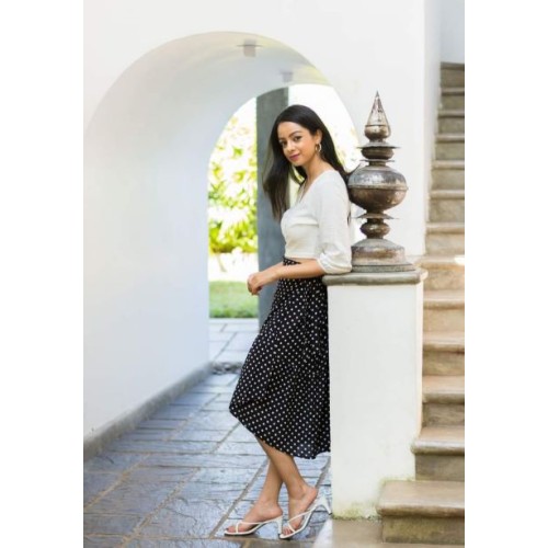 Wrap Bottom Frill Skirt - Black Dot
