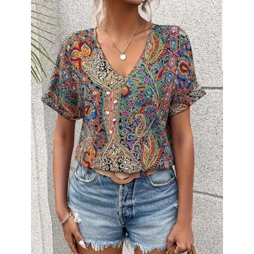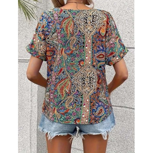 Paisley Print V Neck Top